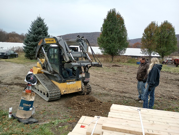 with no response. I finally decided to print out what I'd said in my email and send it to them registered mail to make sure they understood I was serious. The company was in Texas, where I lived for 35 years. I made it clear that I had resources there that I'd use if I needed to take them to court. It would be a pain to do so, but I was not about to let them keep my $2,000. In my world that ain't chump change. The day I printed it all out and put it in an envelope to take to the post office I received an email from them. It said they'd reconsidered and that I'd get my refund. Halleluia! Not giving in to their unsubstantiated demands paid off. I couldn't help but wonder how many people had yielded to their unethical behavior without a fight? Meanwhile, plans were in work to start the pole barn. The contractor we hired who had the equipment needed to dig holes 48" deep showed up on November 4. Construction on my garage had begun at last.
