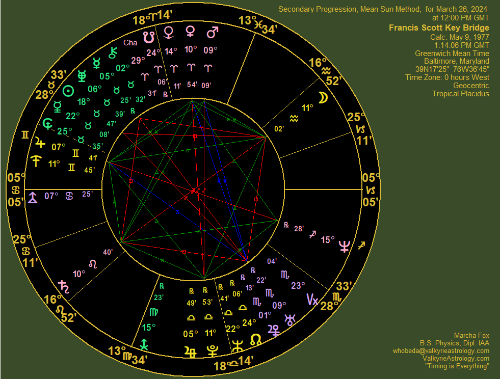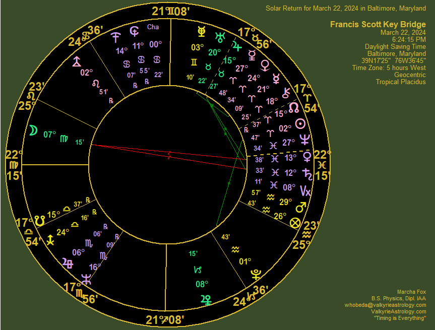 only a few hours away. But first let's look at its solar return. The bridge was "born" March 23, 1977