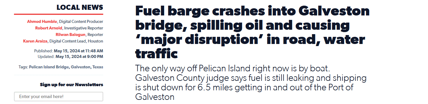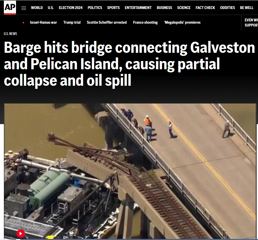 The eclipse was directly over the Houston/Galveston area, as shown by the map below. On May 15 a barge hit the causeway between Galveston and Pelican Island, causing the bridge to partially collapse and spilling oil in Galveston Bay (Where have we seen that before, eh?). On that date, the Sun was in tight conjunction with Jupiter, the Cazimi, or peak, yet to come. The next evening, May 16, a severe storm system hit Houston, killing four people, causing flooding, a power outage that affected just sort of a million people, breaking out high-rise windows, and resulting in general mayhem. It's been said that a picture is worth a thousand words. Thus, here are some pictures of the damage to the causeway as well as in Houston, including links to news stories that include videos. I'm not usually one to brag, but I doubt anyone will disagree that I nailed this one. No telling what more will come on the 18th. For convenience, here are a few excerpts from the previous blog: " Exodus 4:8 (numbers that correspond with the date April 8) states: "And it shall come to pass, if they will not believe thee, neither hearken to the voice of the first sign, that they will believe the voice of the latter sign." "When that may occur is implied by the Biblical standard of 40 days. Forty days after the April 8 eclipse is May 18. That's an interesting day astrologically that gives me shivers. That's the day of the Jupiter cazimi, i.e. when Jupiter, the planet that represents judgment, is "in the heart of the Sun." Even indigenous people perceived the Sun as God. When I observed the 2017 eclipse my impression was that of God turning away from the USA. Unfortunately, I did not see the April 8 eclipse due to cloud cover (that looked a lot like chemtrails, just sayin'), even though it was supposed to be visible from this area... "One possible location where this