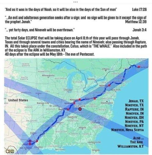 interesting. When that may occur is implied by the Biblical standard of 40 days. Forty days after the April 8 eclipse is May 18. That's an interesting day astrologically that gives me shivers. That's the day of the Jupiter cazimi, i.e. when Jupiter, the planet that represents judgment, is "in the heart of the Sun." Even indigenous people perceived the Sun as God. When I observed the 2017 eclipse my impression was that of God turning away from the USA. Unfortunately, I did not see the April 8 eclipse due to cloud cover, even though it was supposed to be visible from this area. Anyway, that date is still in the future as I write, so we'll keep an eye on it. The symbolism is pretty hard to miss. Since I wrote my eclipse book I've learned more about the predictive power of eclipses, specifically where its effects may occur. A glimpse of that is included in the blog on the collapse of the Francis Scott Key bridge in Baltimore which coincided with the March 25 lunar eclipse. One possible location where this might